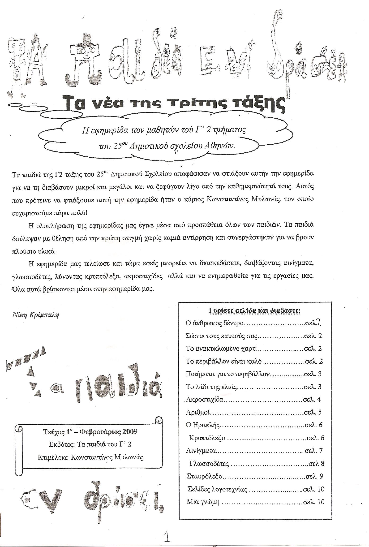 Η εφημερίδα της Γ' τάξης - Σχολική εφημερίδα "Τα παιδιά εν δράσει"